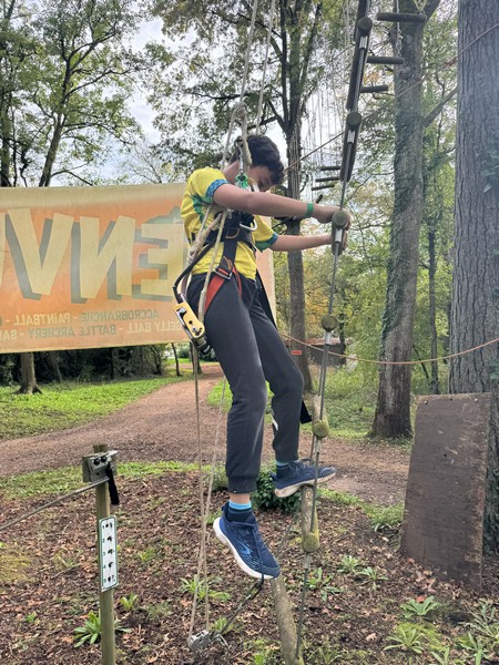 En plus des entrainements habituels et d'une journée complète au stade ou les jeunes ont pu découvrir la pratique du footgolf, toutes les catégories jeunes du club ont eu la chance de s'écarter des terrains pour vivre une super expérience en pleine nature, avec une sortie à l'accrobranche de Gimouille (Fun Parc aventure). Ce fut l'occasion parfaite pour renforcer les liens entre les joueurs et travailler leur esprit d'équipe, tout en prenant du plaisir à relever des défis physiques en hauteur. Entre l'entraide, le dépassement de soi et les éclats de rire, cette sortie a offert à chacun des souvenirs inoubliables.